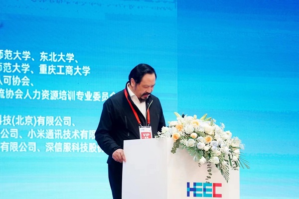 國務(wù)院參事室特約研究員,中國勞動學(xué)會會長,人力資源和社會保障部原黨組副書記、副部長楊志明,中國高等教育學(xué)會副會長、江蘇省政協(xié)教衛(wèi)體委員會主任葛道凱,中國工程院院士,同濟大學(xué)原黨委常委、副校長蔣昌俊,重慶市教育委員會二級巡視員譙建, 中國移動通信聯(lián)合會執(zhí)行會長、中國移動通信聯(lián)合會元宇宙產(chǎn)業(yè)委員會共同主席、全球元宇宙大會主席倪健中,機械工業(yè)教育發(fā)展中心主任、中華職業(yè)教育社專家委員會副主任、中國職業(yè)技術(shù)教育學(xué)會副會長陳曉明,中央企業(yè)智庫副理事長,復(fù)旦大學(xué)管理學(xué)院教授,中國對外承包工程商會副會長,中國人才交流協(xié)會副會長徐曉冬,廣東開放大學(xué)黨委副書記、校長劉文清,中國醫(yī)科大學(xué)黨委常委、副校長曲波,教育部職業(yè)院校信息化教學(xué)指導(dǎo)委員會副主任、清華大學(xué)教育研究院教授韓錫斌,山東商業(yè)職業(yè)技術(shù)學(xué)院黨委副書記、院長王鑫,新鄉(xiāng)職業(yè)技術(shù)學(xué)院黨委書記張林,人社部中國人事科學(xué)研究院副研究員、人力資源市場與流動管理研究室副主任、中國勞動學(xué)會副秘書長吳帥,民生教育集團董事會主席李學(xué)春,中智科技集團有限公司黨委書記、總經(jīng)理劉懷增,中文聯(lián)盟主席、世界漢語教學(xué)學(xué)會智慧教育分會理事長、五洲漢風(fēng)網(wǎng)絡(luò)科技(北京)有限公司副總經(jīng)理王錦紅,紫光股份高級副總裁、紫光教育總裁陳永紅,智聯(lián)招聘高級副總裁王戈等出席大會。學(xué)會副秘書長吳英策主持大會第一階段,民生教育集團執(zhí)行董事、總裁左熠晨主持大會第二階段。