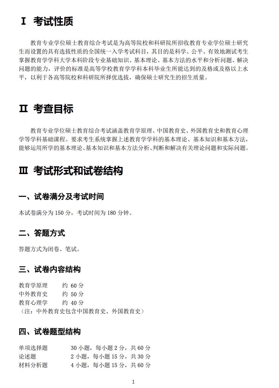 現(xiàn)將2024年全國碩士研究生招生考試教育專業(yè)學(xué)位碩士《教育綜合考試大綱》予以公布。