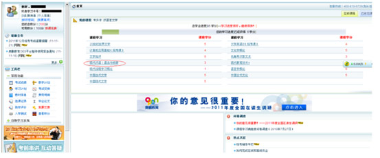 | 步 ? ? ? ? 使用你的用戶名、密碼登錄學(xué)生中心首頁。在該頁面的中部“我的課程”專區(qū)下點(diǎn)擊“課程學(xué)習(xí)”欄目下任何一個(gè)課程(以《現(xiàn)代漢語:語法與修辭》為例),進(jìn)入課程學(xué)習(xí),如圖示13-1 |