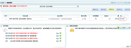 | 第七步: ? ? ? ? 點(diǎn)擊“歷史記錄“如圖13-7所示,可看到歷次作業(yè)得分情況。 |