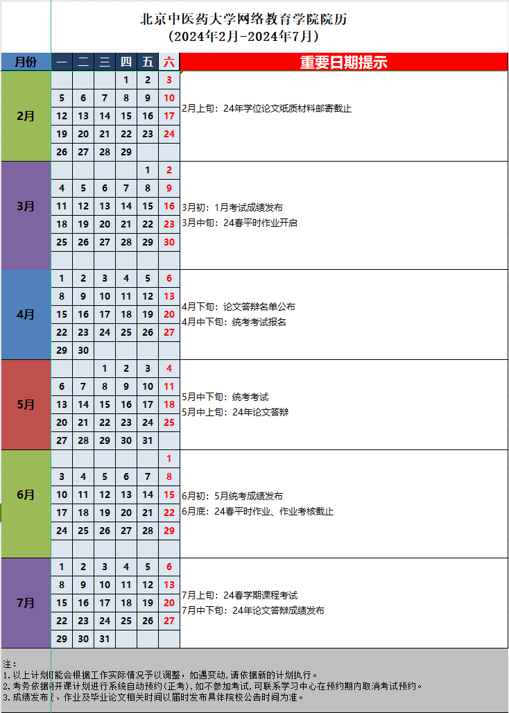 13.24春學(xué)期北京中醫(yī)藥大學(xué)網(wǎng)絡(luò)教育學(xué)院院歷(2024年2月-2024年7月).xls