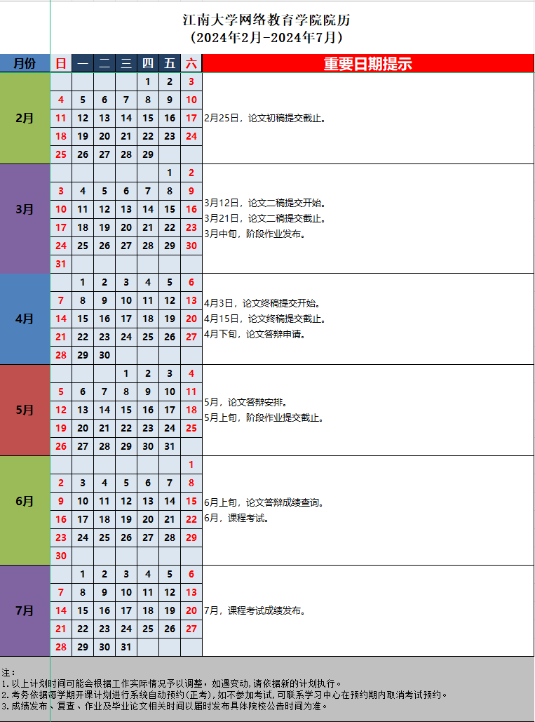 2.24春學期江南大學網(wǎng)絡教育學院院歷(2024年2月-2024年7月).xls
