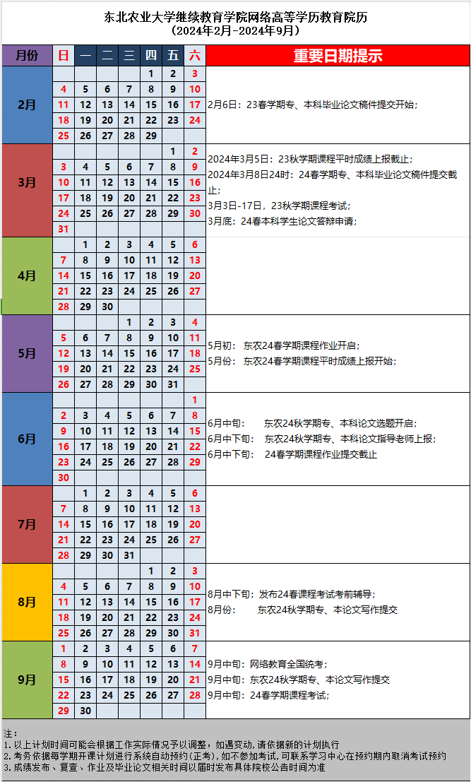 21.24春學(xué)期東北農(nóng)業(yè)大學(xué)網(wǎng)絡(luò)教育學(xué)院院歷(2024年2月-2024年9月).xlsx