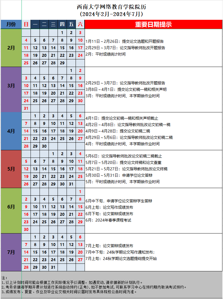 8.24春學(xué)期西南大學(xué)網(wǎng)絡(luò)教育學(xué)院院歷(2024年2月-2024年7月).xlsx