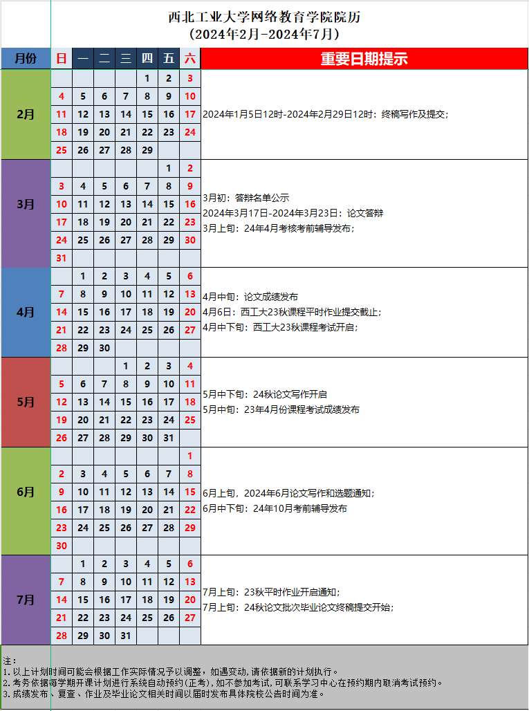 26.24春學(xué)期西北工業(yè)大學(xué)網(wǎng)絡(luò)教育學(xué)院院歷(2024年2月-2024年7月).xlsx