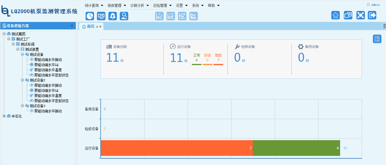 LQ2000機(jī)泵監(jiān)測(cè)管理系統(tǒng)(巡檢)針對(duì)石化企業(yè)設(shè)備管理的現(xiàn)狀和管理信息化的需求而推出的機(jī)泵監(jiān)測(cè)管理系統(tǒng),系統(tǒng)采用LQ滾動(dòng)軸承檢測(cè)核心技術(shù),集巡檢數(shù)據(jù)采集與存儲(chǔ)、設(shè)備運(yùn)行狀態(tài)查查詢(xún)、數(shù)據(jù)查詢(xún)、報(bào)警查詢(xún)、振動(dòng)波形頻譜分析,基于互聯(lián)網(wǎng)、局域網(wǎng)數(shù)據(jù)共享,能有效地對(duì)高危機(jī)泵設(shè)備進(jìn)行監(jiān)測(cè),為設(shè)備管理人員提供詳實(shí)的機(jī)泵運(yùn)行信息,及時(shí)預(yù)報(bào)故障、對(duì)高危機(jī)泵群的運(yùn)行狀態(tài)一目了然,使高危機(jī)泵的設(shè)備管理水平更上一個(gè)新的臺(tái)階。